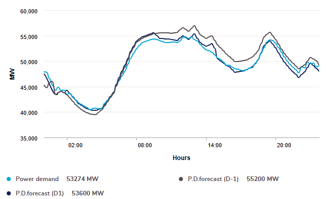 Data is from this Friday (2025-10-24). And apparently for france, there is a high demand thought all day and another small peak at around 17. But demand is pretty low at 2 to 4AM.