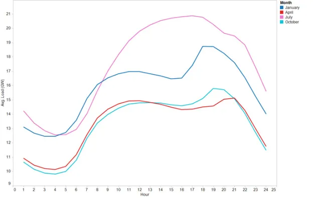 Energy demand is higher at summer for most of the developed countries. Mainly because of Air conditioning. But again, demand for all season almost peaked at 5PM to 7PM.